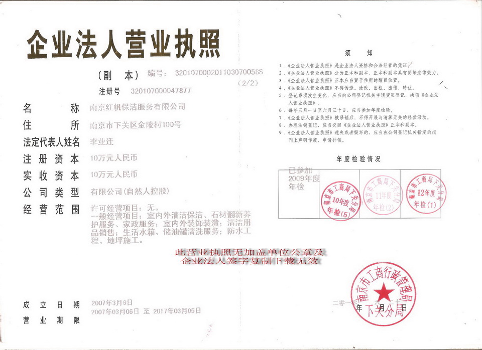 本公司是南京市一家專(zhuān)業(yè)保潔公司,清洗公司,石材翻新養(yǎng)護(hù)公司,家政公司。2000年成立至今,目前是集商業(yè)、賓館、大型酒店、寫(xiě)字樓內(nèi)的清洗保潔,小區(qū)內(nèi)的物業(yè)管理與清潔,二次供水水箱清洗,樓宇完工后的清潔,清洗水箱服務(wù),家居開(kāi)荒,地板翻新打蠟,石材翻新,大理石結(jié)晶,大型煙道清洗,地毯沙發(fā)清洗,大型水晶燈及各類(lèi)燈具清洗,家政服務(wù)為一體的專(zhuān)業(yè)服務(wù)公司.我們擁有一支專(zhuān)業(yè)的保潔隊(duì)伍專(zhuān)業(yè)設(shè)備。詳細(xì)請(qǐng)見(jiàn)公司簡(jiǎn)介
